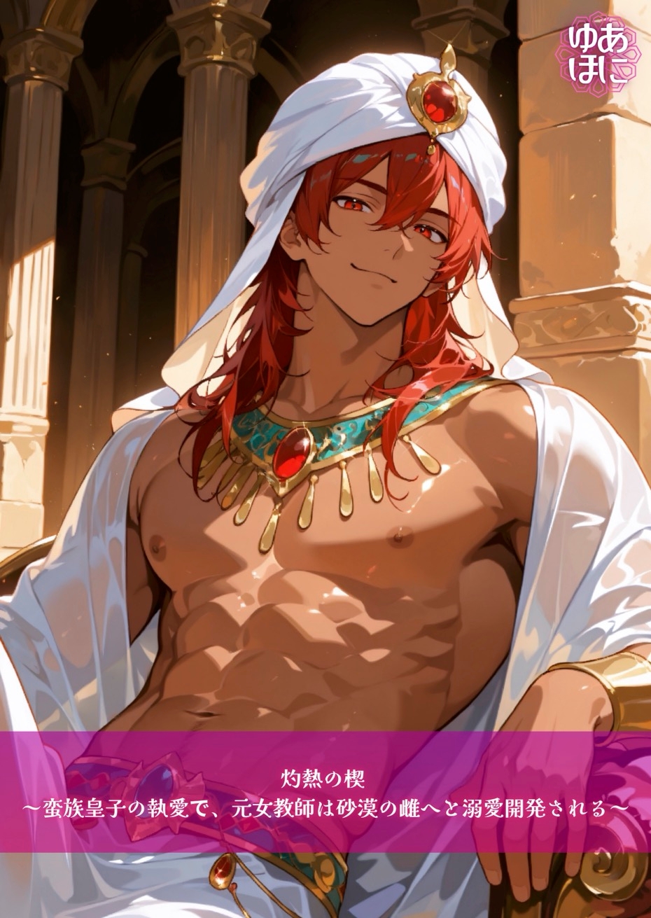 遠足の引率中に事故に遭い、灼熱の砂漠で目を覚ました小学校教師のエレナ。 盗賊に襲われかけた彼女を救ったのは、炎のような赤い髪と、圧倒的な「雄」の風格を持つ蛮族の皇子・ラシードだった。