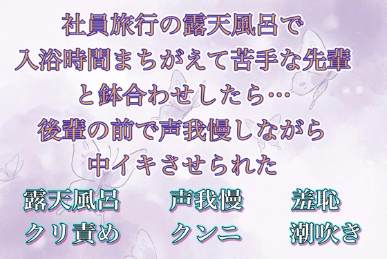 「社員旅行の露天風呂で入浴時間まちがえて苦手な先輩と鉢合わせしたら…後輩の前で声我慢しながら中イキさせられた」のFANZA価格データはありません