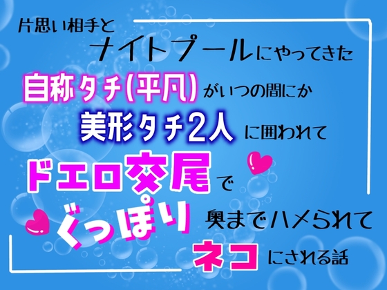 自称タチの平凡くんが、幼馴染と良い雰囲気になりたくてナイトプールに赴くも、美形タチ2人に捕まってしまい、自分はネコなんだと分からされてしまう話