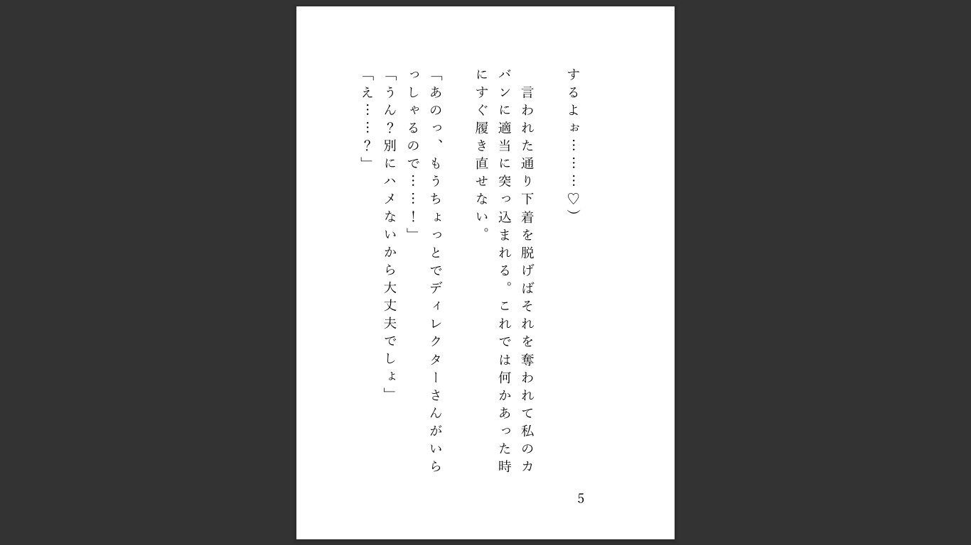 ある日はテレビ局の控え室でノーパンにされ、ディレクターたちとの打ち合わせ中に机の下でクリトリスを弄られてイキ我慢させられたり……♡