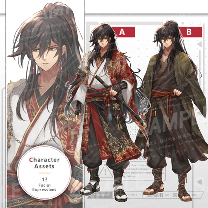 和装の男性(表情13種/返り血・包帯・刀セット)