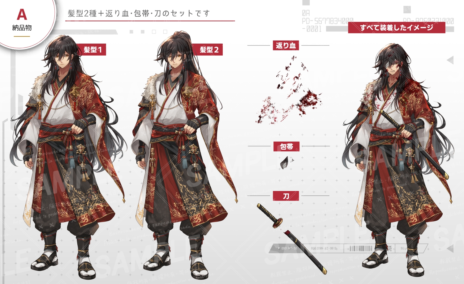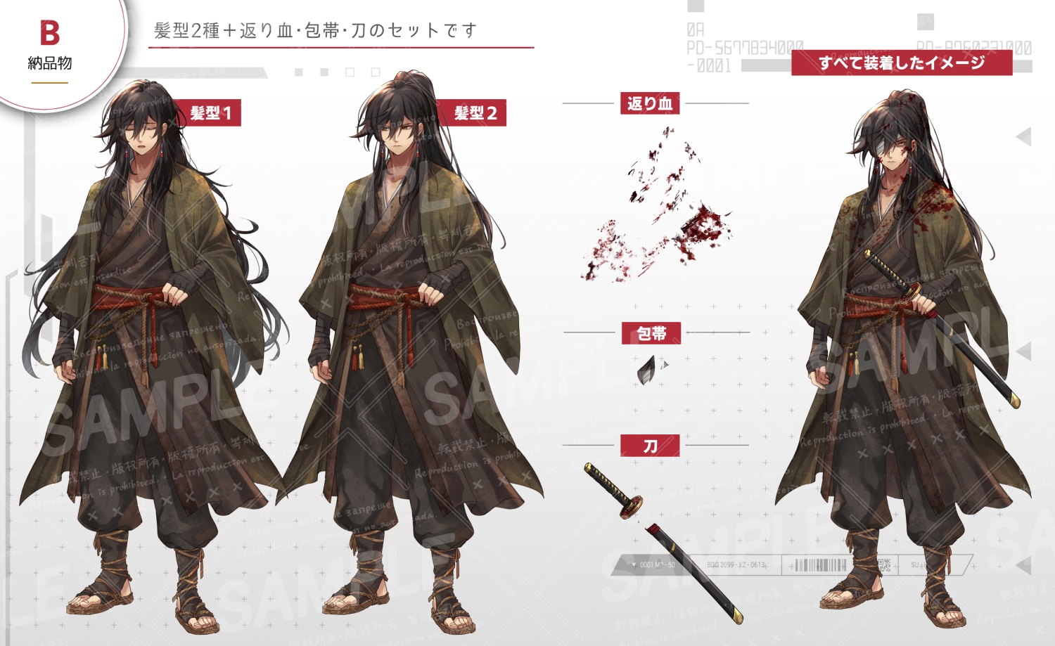 返り血・包帯・刀の単体画像を同梱しており、差分として装着できます。