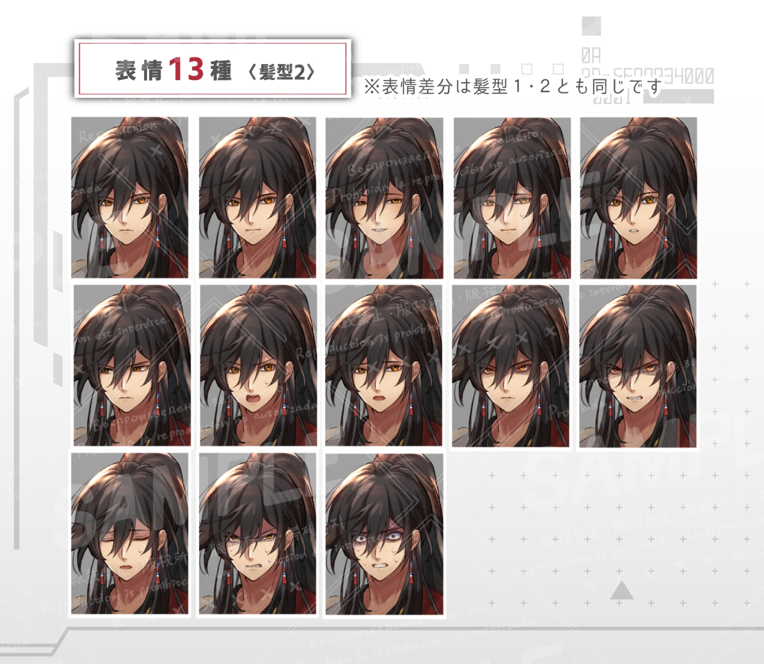 髪型1:表情13種+返り血+包帯+刀=計 16枚