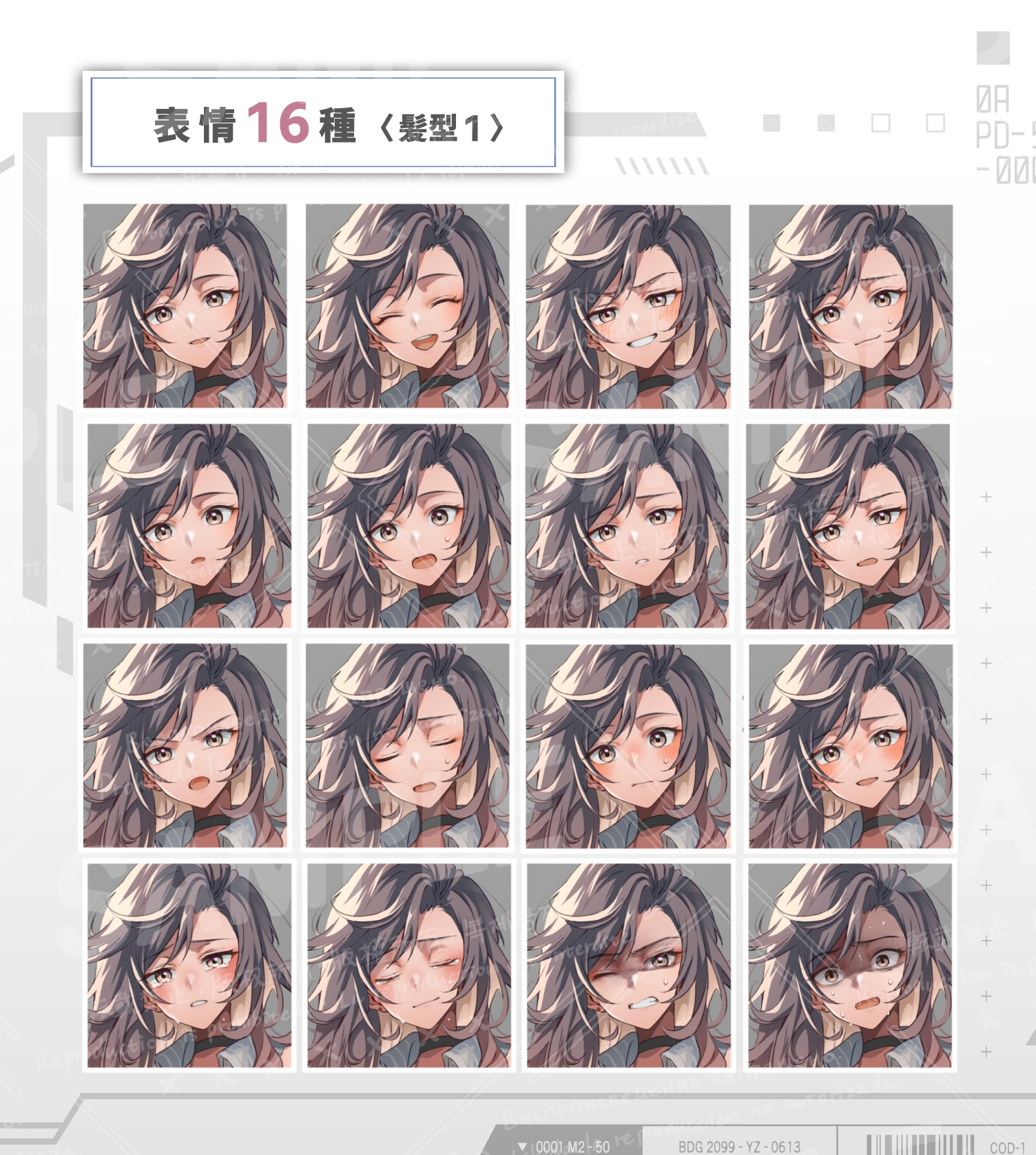 グラデーションヘアの女性(表情16種/髪型2種セット)