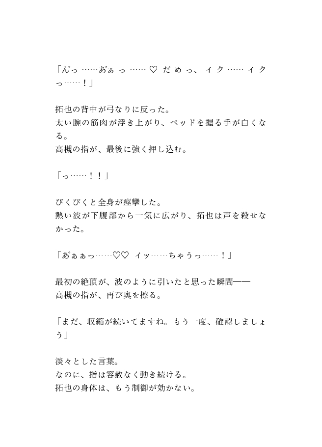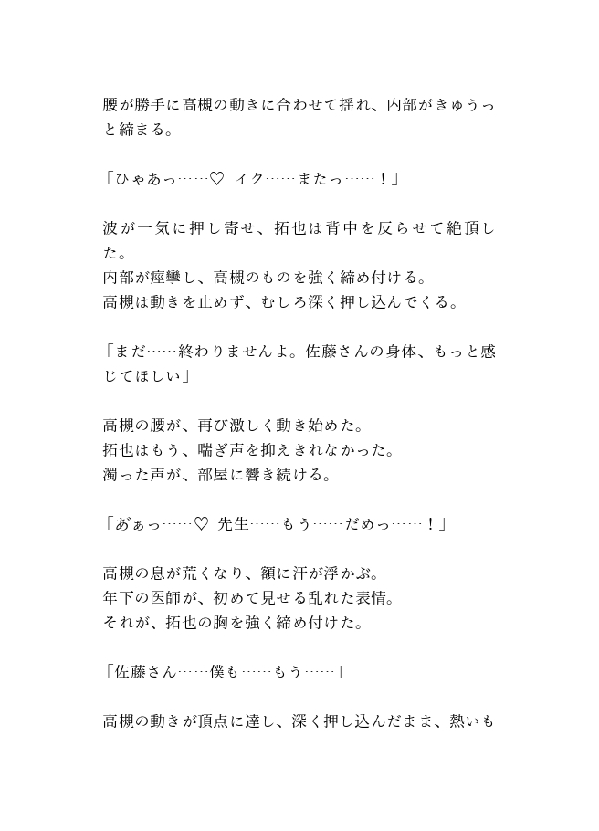 年下のイケメン医師・高槻に診察された瞬間から、拓也の身体は裏切り始めた。