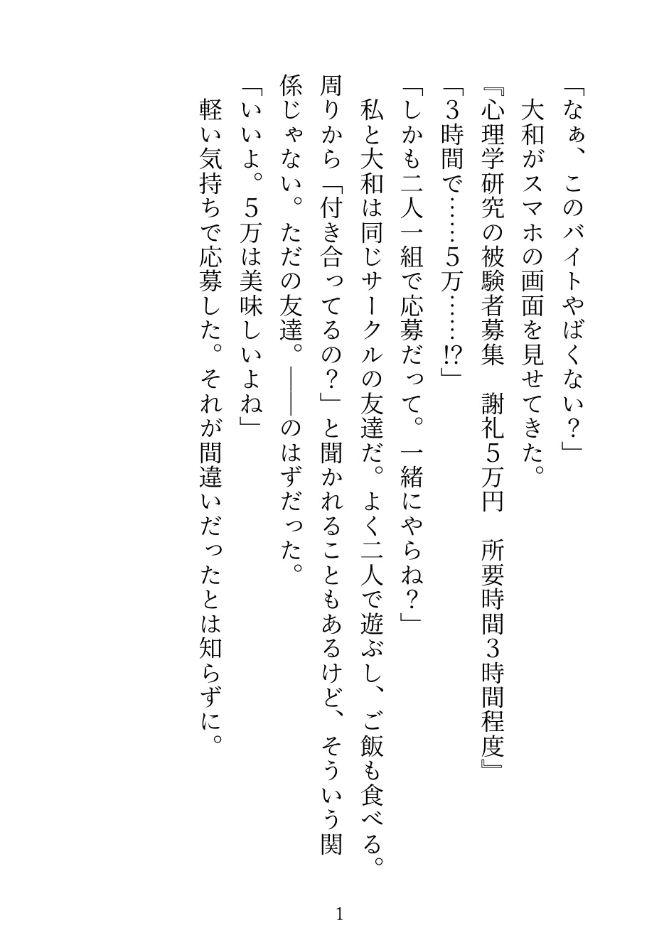 5万円の怪しいバイトに友達と参加したら「エッチな実験」だった。友達に舐められて何回もイかされて、「仕事だから仕方ない」って言い聞かせてたのに——