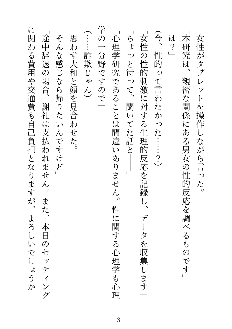 「本研究は、親密な関係にある男女の性的反応を調べるものです」