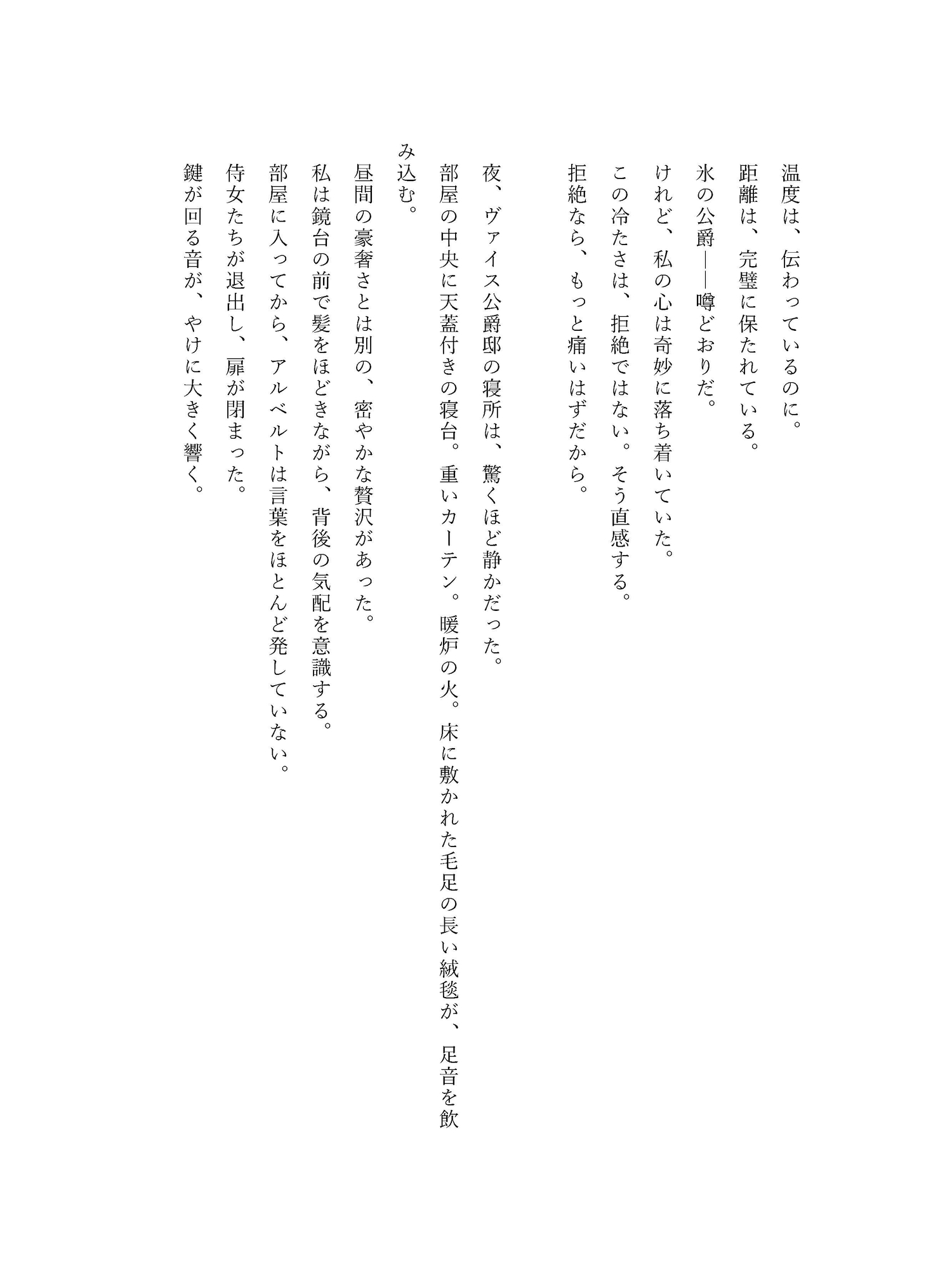 扉が閉じた瞬間、アルベルトの指先は確かめるように熱を帯び、リリアの耳元で低く囁く。