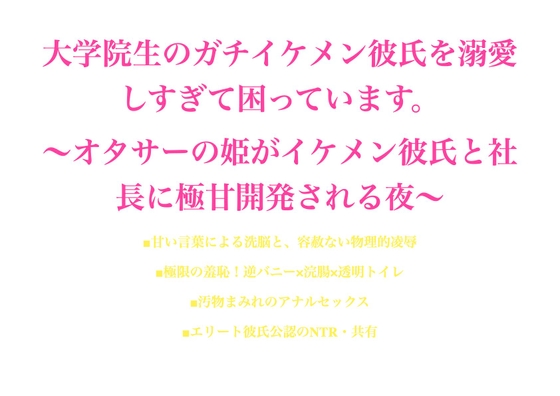 「大学院生のガチイケメン彼氏を溺愛しすぎて困っています。 オタサーの姫がイケメン彼氏と社長に極甘開発される夜 」のFANZA価格データはありません