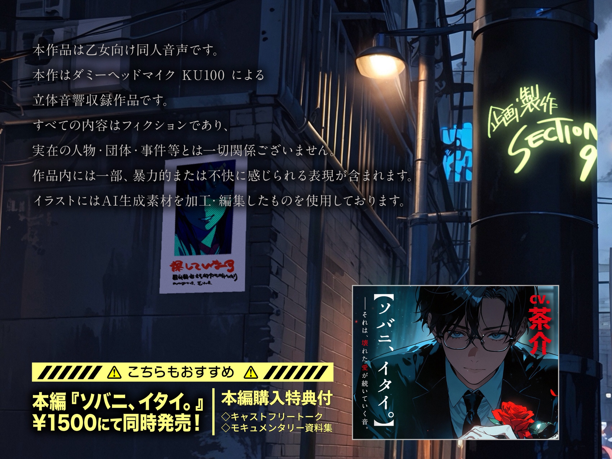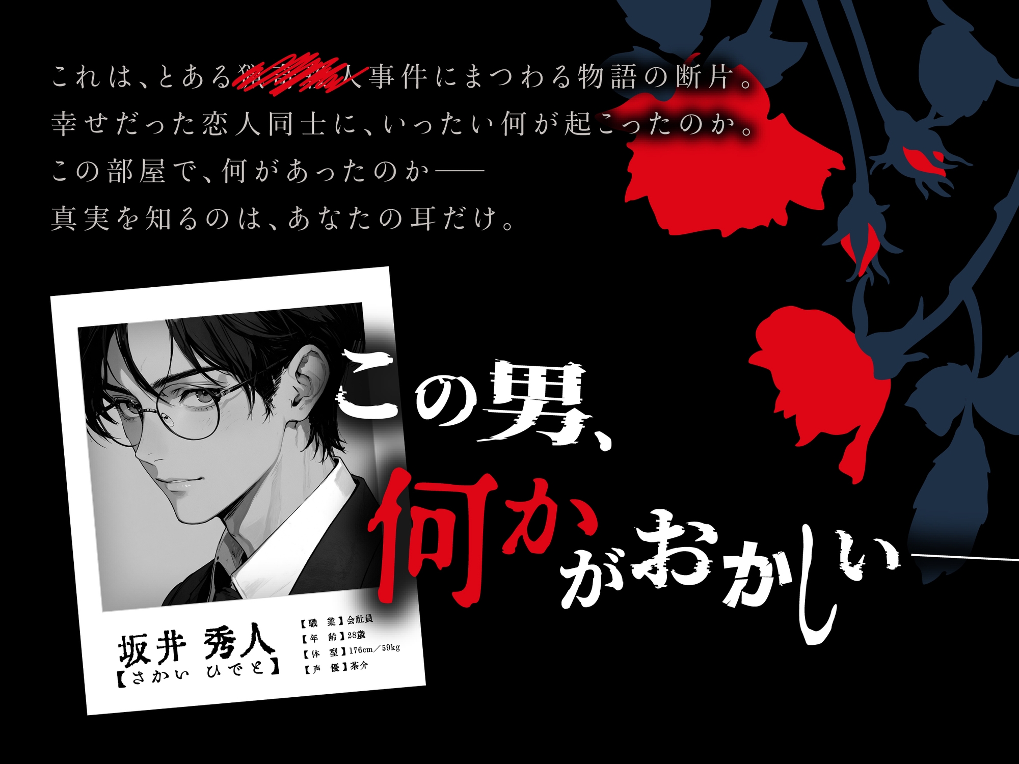 | ジャンル: | ASMR / 女性視点 / バイノーラル/ダミヘ / 恋人同士 / サスペンス / 退廃/背徳/インモラル / 執着攻め / 狂気 / |