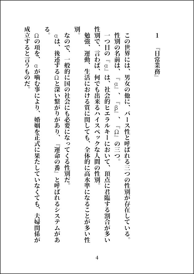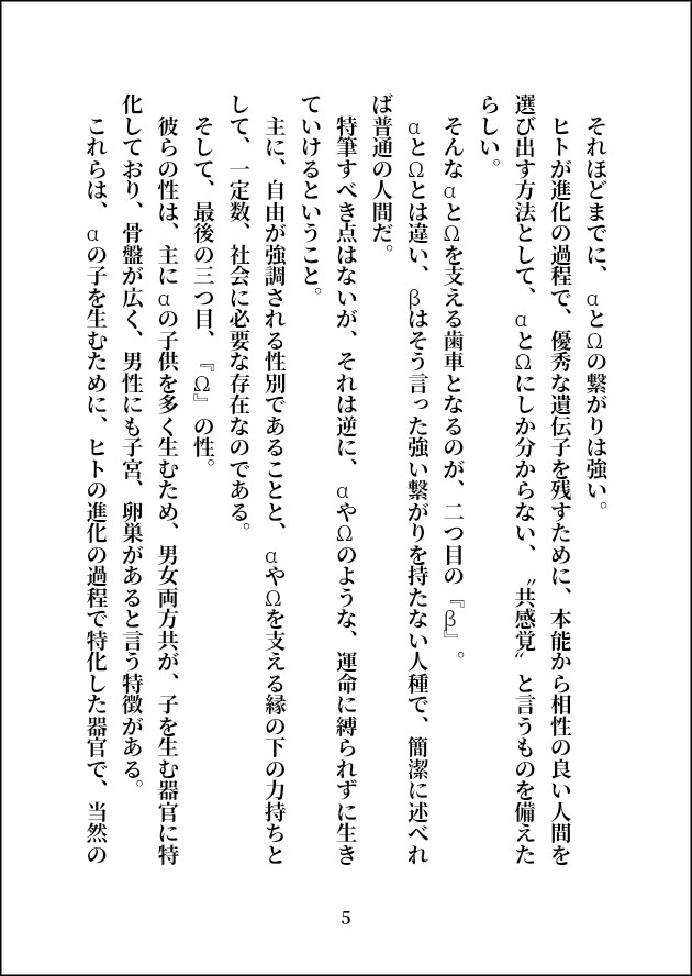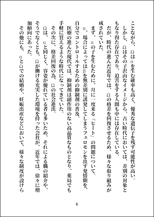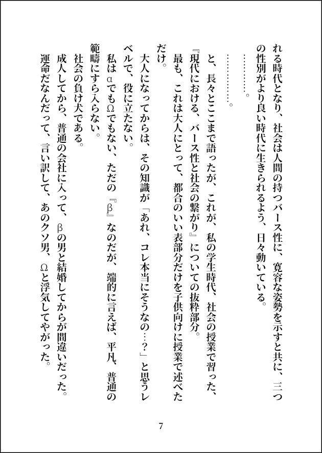 それでも、わざわざ一攫千金を狙って自分の命を賭ける気など毛頭ない主人公は、ひょんなことから仕事現場で出会った、『サリー』というΩの男娼に出会う。