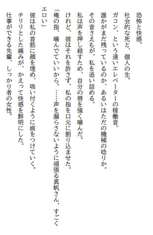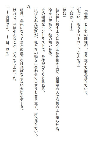「……お望みなら、朝まで『お仕事』にお付き合いしますよ?」 終電後の静まりかえった会議室。いつも生意気な年下後輩の、熱すぎる指先と独占欲。 「先輩のそんな声、僕以外に聞かせないでくださいね」