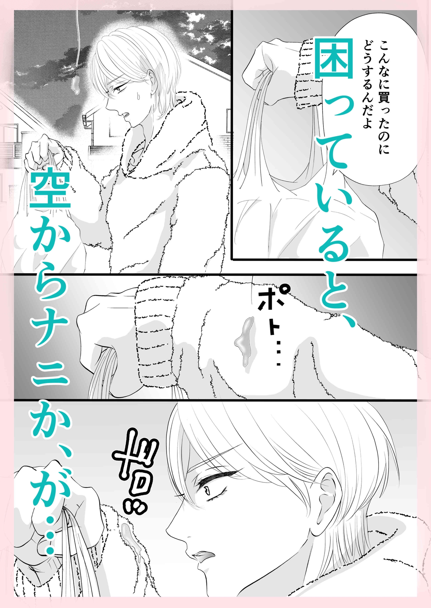ガッカリしていると、空から何かが降ってきて、服に着いた