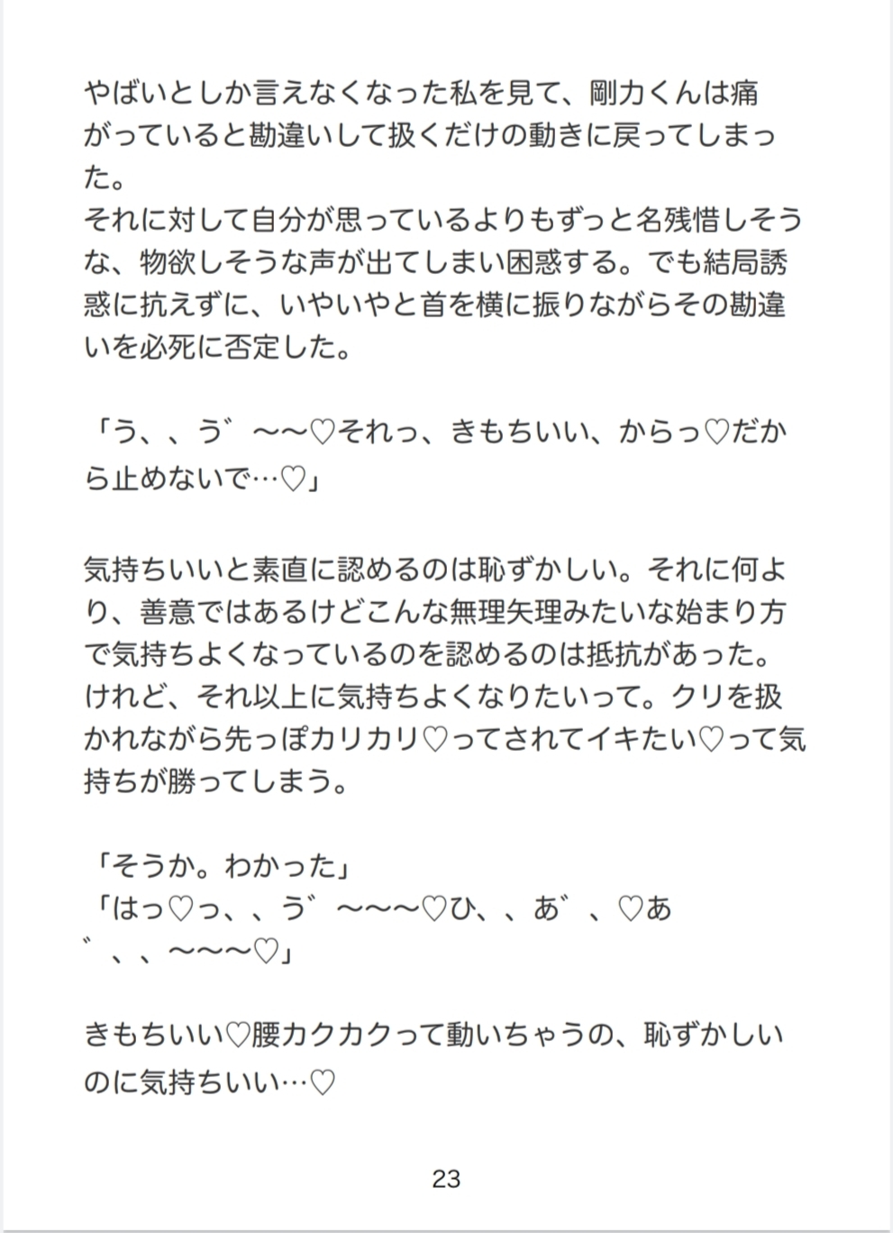 剛力くんに善意からおちんちん(クリです)の機能を調べられたり、大きくするために引っ張られたりして射精(潮吹き)を覚えさせられる話です。