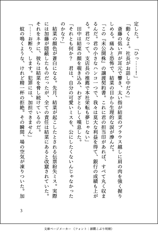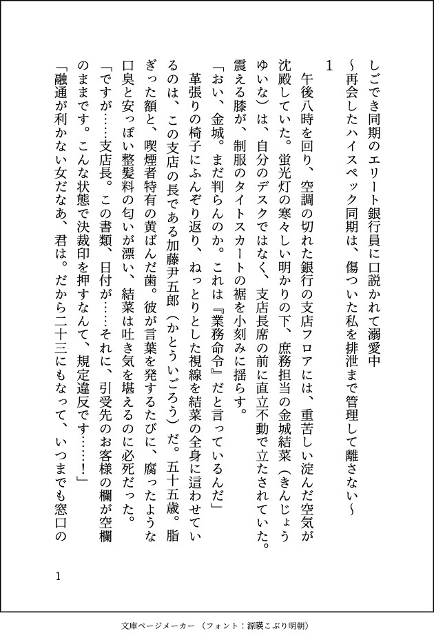 銀行の支店で、汚職まみれの上司たちに性的暴行を受けそうになった結菜。 絶望の中で助けを求めたのは、かつて自分が振ったはずのハイスペック同期・九尾神一だった。