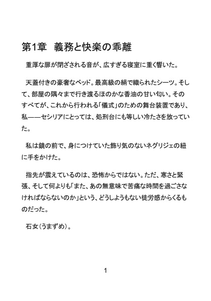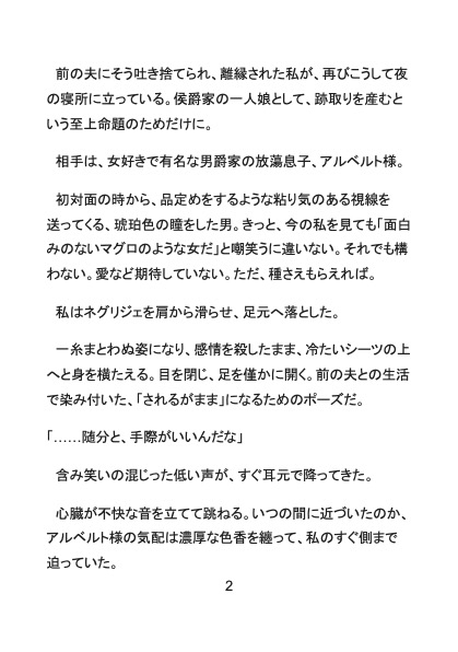 初夜のベッド、どうせまた「マグロのような女だ」と嘲笑われる――。 そう覚悟して冷たいシーツに横たわったセシリアだったが、 琥珀色の瞳をぎらつかせた彼が与えてきたのは、粗暴な行為ではなく、とろけるほど巧みな“開発”だった。