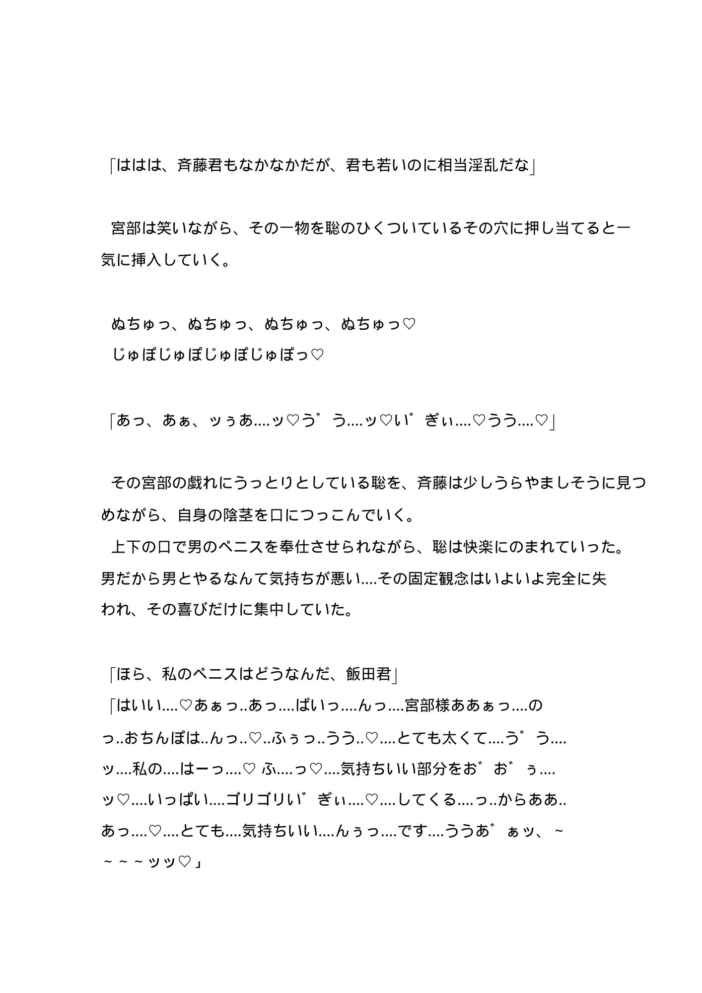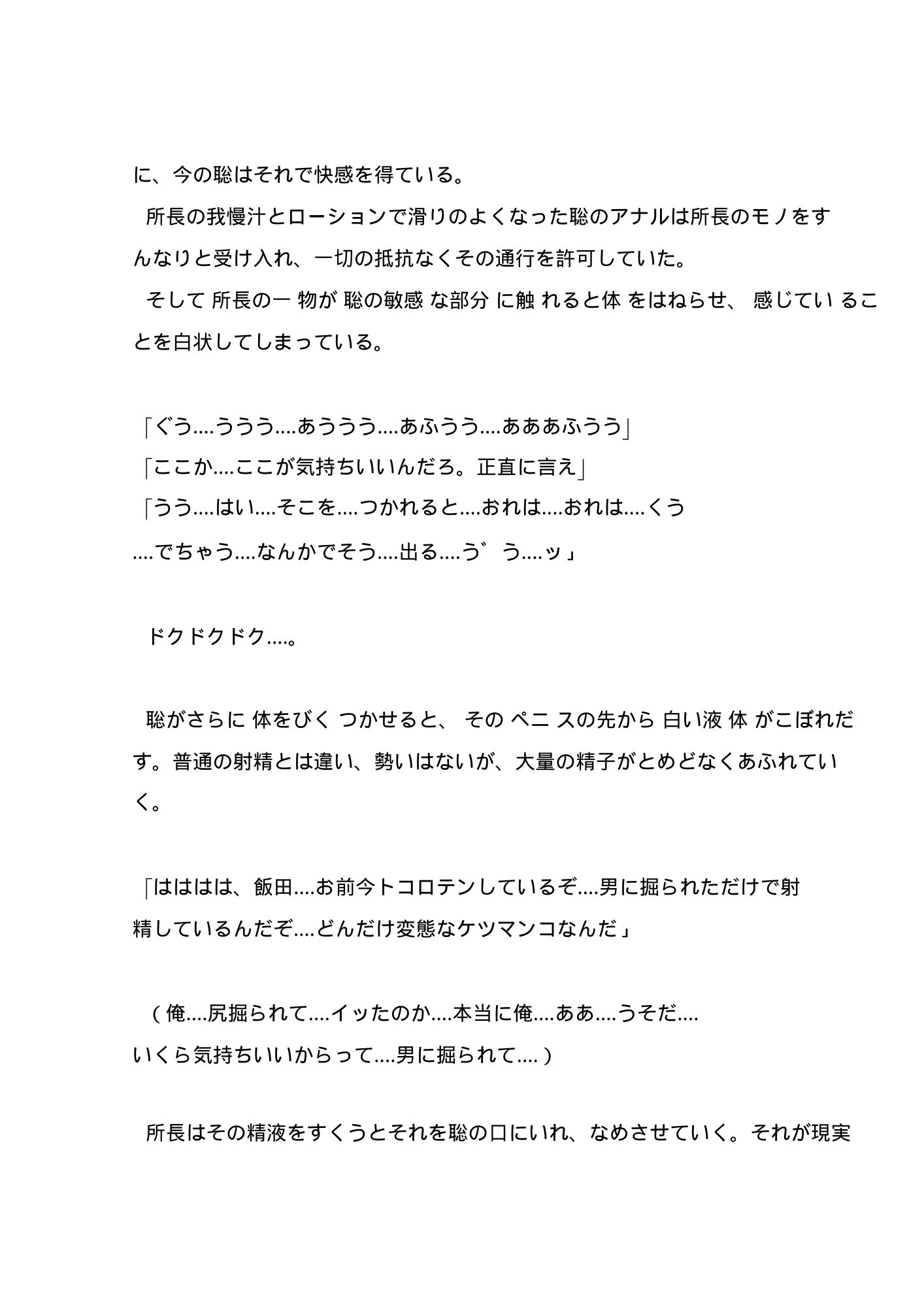 社労士事務所所長 × トラウマ持ちノンケ事務所職員。 社労士事務所で働いている主人公。未経験から優しく色々と叩きこんでくれた所長に対し、恩を感じていた。 しかし「所長には感謝しています。何でもやらせていただきます!」‥‥その言葉を言った日から所長は変わり始めた‥‥。 心のトラウマを利用されていく感じです。 セクハラ、目隠し、晒し、足舐め、電気あんま、性接待、アナニー等