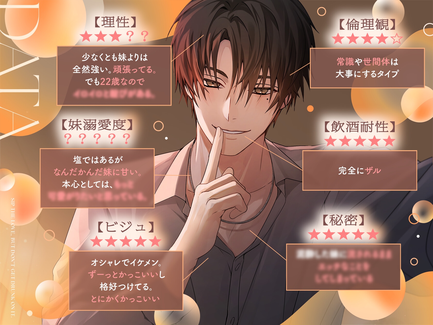 二十歳になり、お酒を飲めるようになったばかりのあなた。大好きな義理の兄に言わせれば、結構酒癖が悪いらしい。飲み会の後は駅まで迎えに来てくれたりするし、いつもは塩なお兄ちゃんが心配してくれるのが嬉しくて甘えてみると、いつも通りの塩対応……><冷たいけれどなんだかんだ甘い兄への恋心は募るばかりでえっちな夢まで見てしまう始末。このままではいけないと思い、真剣に告白をするが……?