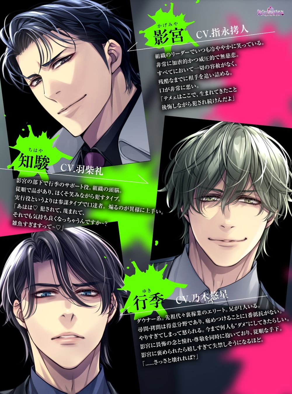 刑事であるあなたは、とある事件の容疑者を取り調べる中で重大な情報を掴んだ。近頃相次いで発生している連続行方不明事件。その背後にいる犯行組織グループのアジトの存在だった。情報漏洩を避けるため、あなたは単独での極秘潜入捜査を決断。夜の闇に紛れ、アジトへと侵入した……のだが──あなたを待っていたのは、地獄だった。【救いなど一切訪れない。そこに在るのは快楽と絶望だけ】(CV.指永拷人/羽柴礼/乃木悠星)