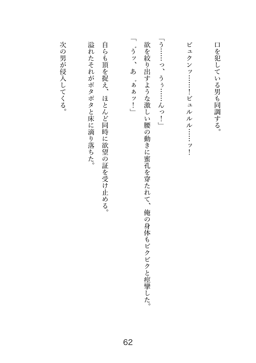 山奥の開拓地に配属された新人、花守優樹。待っていたのは、屈強な男たちに囲まれた現場と、その中心に立つ、五十嵐という男だった。 赴任初日の夜、「歓迎会」と称した宴が開かれる。皆、妙に優しく、ようやく安堵したのも束の間、酒と熱気と視線に包まれ、花守は次第に“流されて”いく。 拒むほどでもなく、望んだわけでもない。ただ、抗えなかった───。それは、ただの歓迎会で終わるはずのない一夜だった。
