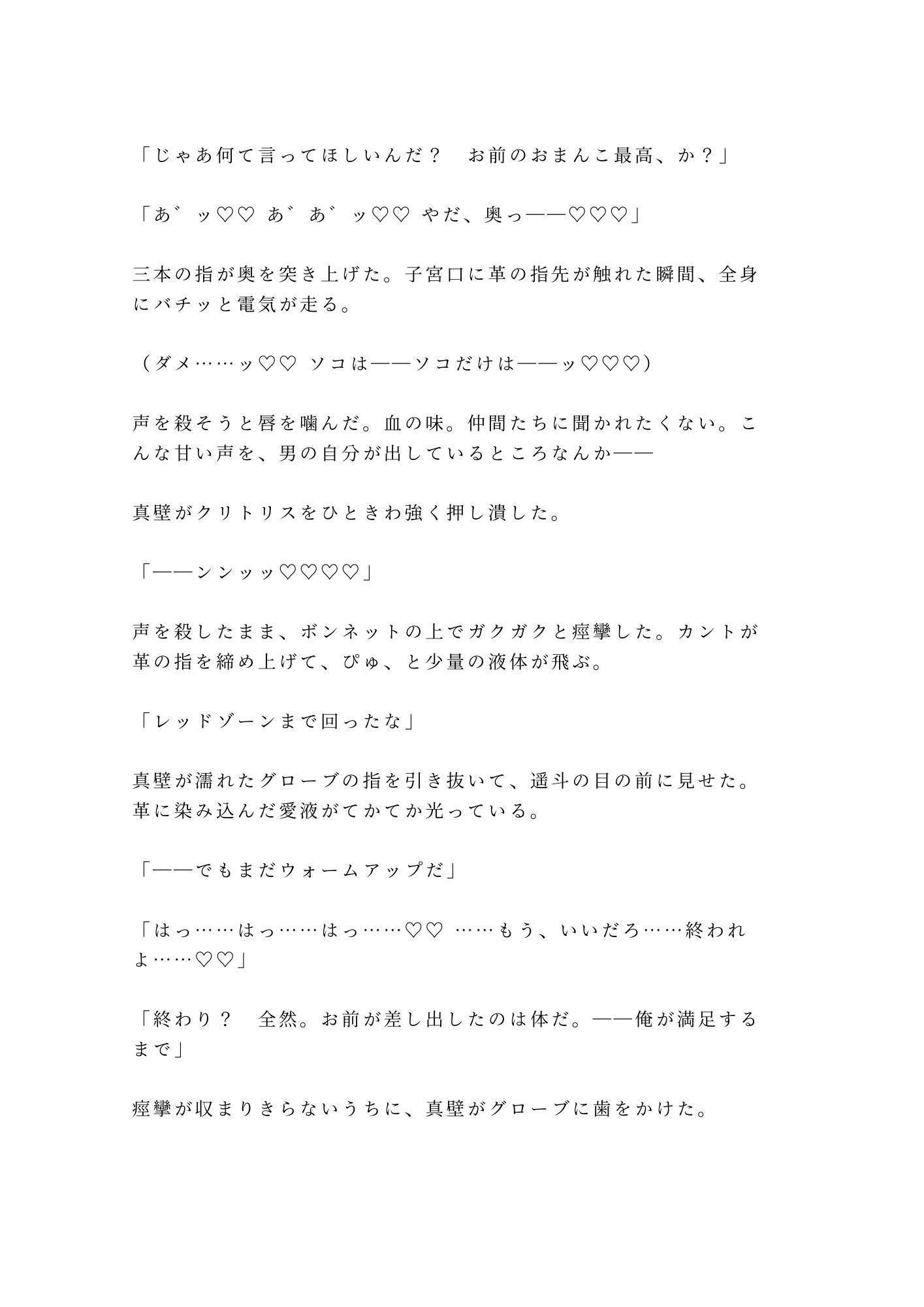 カントボーイ / 走り屋・レース / 公開プレイ / 中出し / 快楽堕ち / 雌堕ち / 脅迫 / 体格差 / 執着攻め / 処女喪失