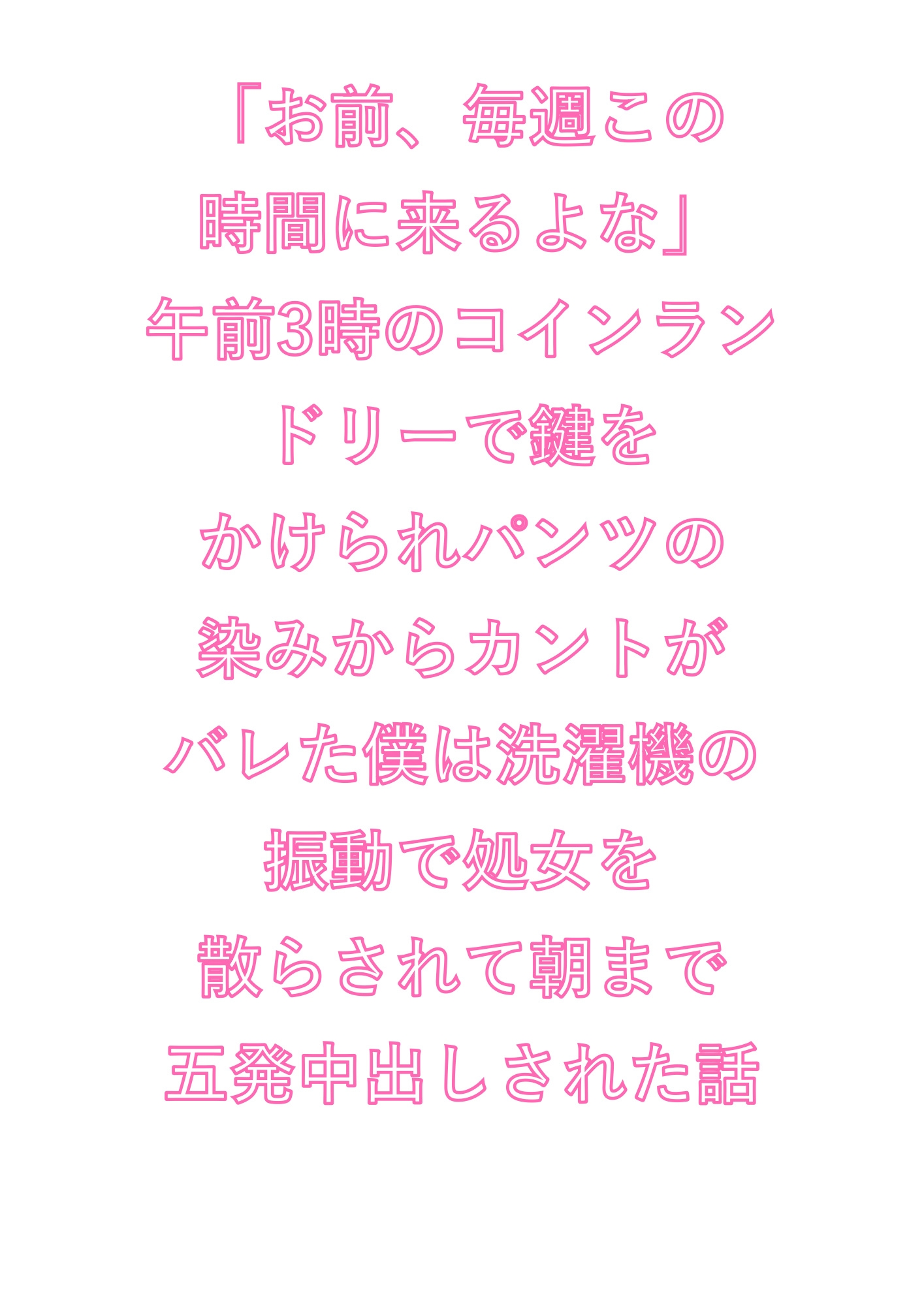「「お前、毎週この時間に来るよな」午前3時のコインランドリーで鍵をかけられパンツの染みからカントがバレた僕は洗濯機の振動で処女を散らされて朝まで五発中出しされた話」のFANZA価格データはありません