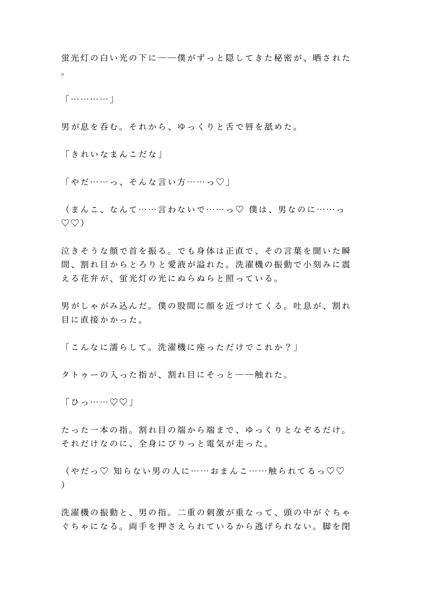 深夜3時のコインランドリー。僕の秘密を知る男が、鍵をかけた。「カントボーイだろ、お前」——誰にも言えなかった身体の秘密を、洗濯物の染みから見抜かれていた。振動する洗濯機の上で暴かれる初めての快感。逃げ場のない密室で、知らない男の指が僕の知らない僕を引きずり出していく。