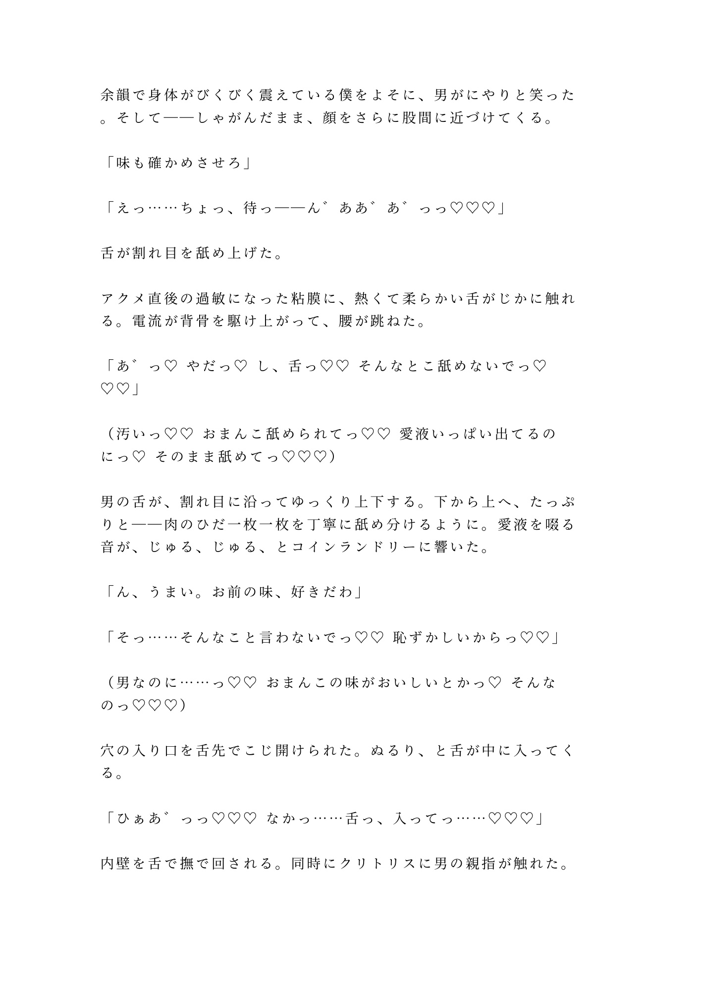 深夜3時のコインランドリー。誰にも会わないはずの時間帯で、僕はずっと秘密を守ってきた。男の身体に生まれながら、股の間にある「もうひとつの器官」——誰にも知られてはいけない、僕だけの秘密。