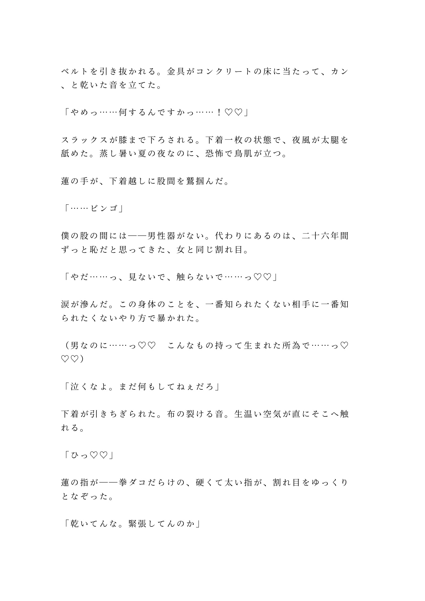 会社員の水谷奏には、二十六年間ひた隠しにしてきた秘密がある。男の身体に生まれながら、股の間にあるのは女と同じ割れ目。誰にも知られてはならない。知られたら終わりだと、ずっと自分に言い聞かせてきた。