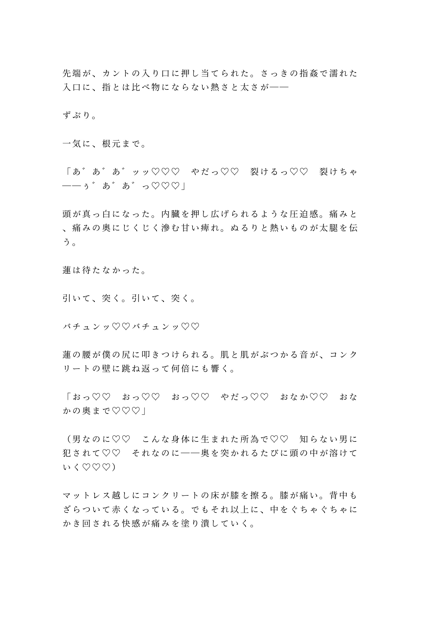 金髪、般若の刺青、拳ダコだらけの太い指。粗暴で野蛮で、けれどどこか獣じみた色気を纏う蓮に壁へ押しつけられ、奏の理性は一枚ずつ剥がされていく。触れられたことのない場所を無遠慮にこじ開けられ、知らなかった快感を叩き込まれ、抵抗する声はいつしか甘い嬌声に変わっていた。
