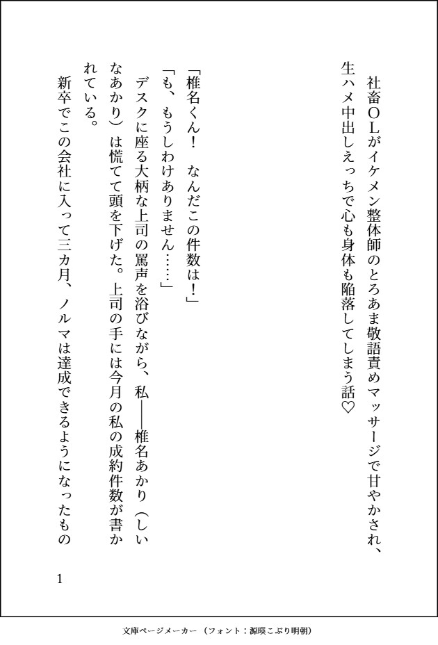 | カップリング: | イケメン整体師×社畜OL / |