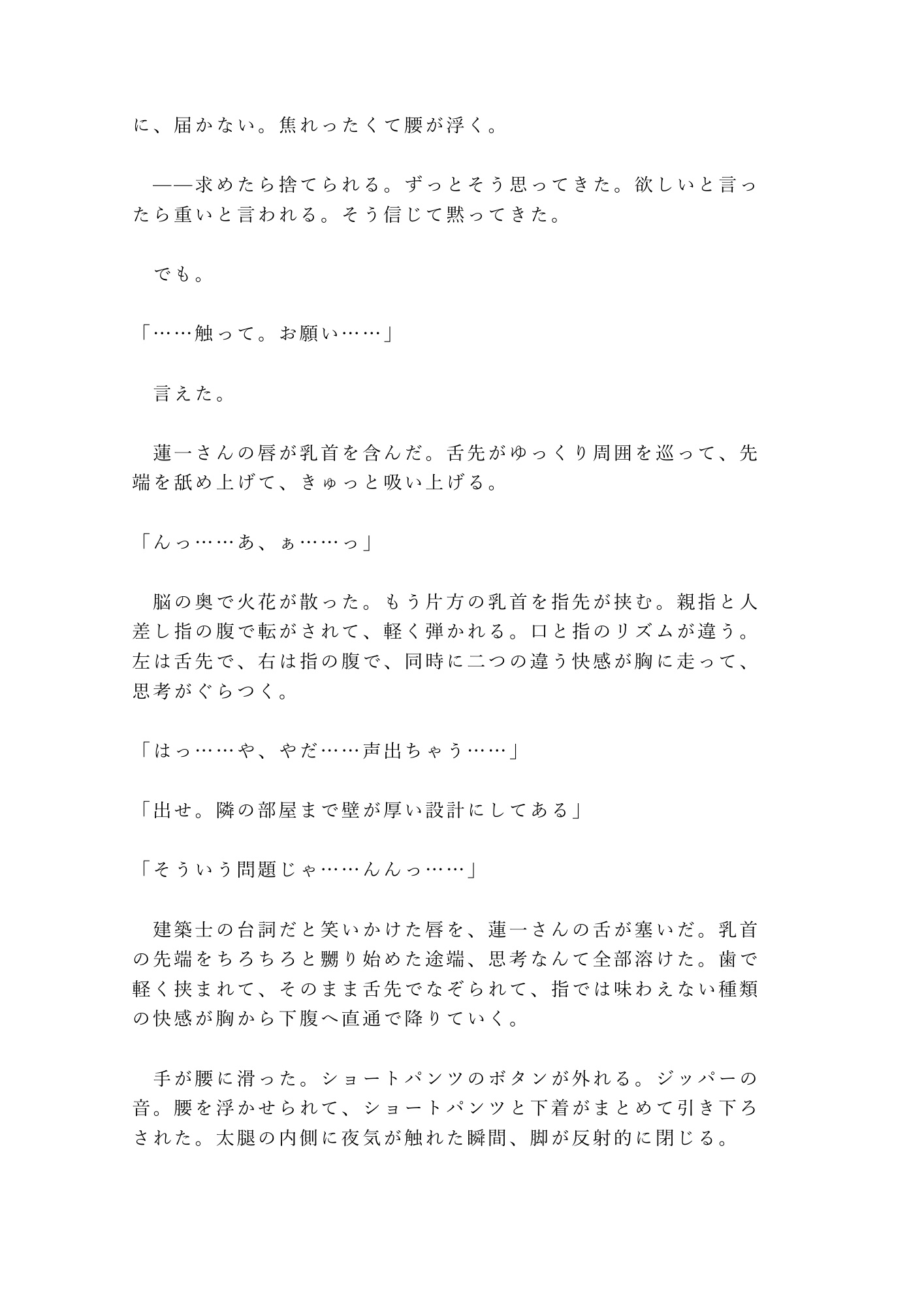 我慢しなくていい。求めていい。欲しがっていい。——彼の腕の中でだけ、やっとそう思えた。