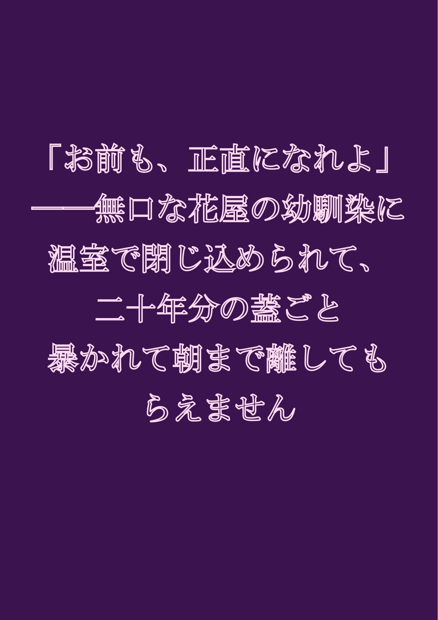「「お前も、正直になれよ」──無口な花屋の幼馴染に温室で閉じ込められて、二十年分の蓋ごと暴かれて朝まで離してもらえません」のFANZA価格データはありません