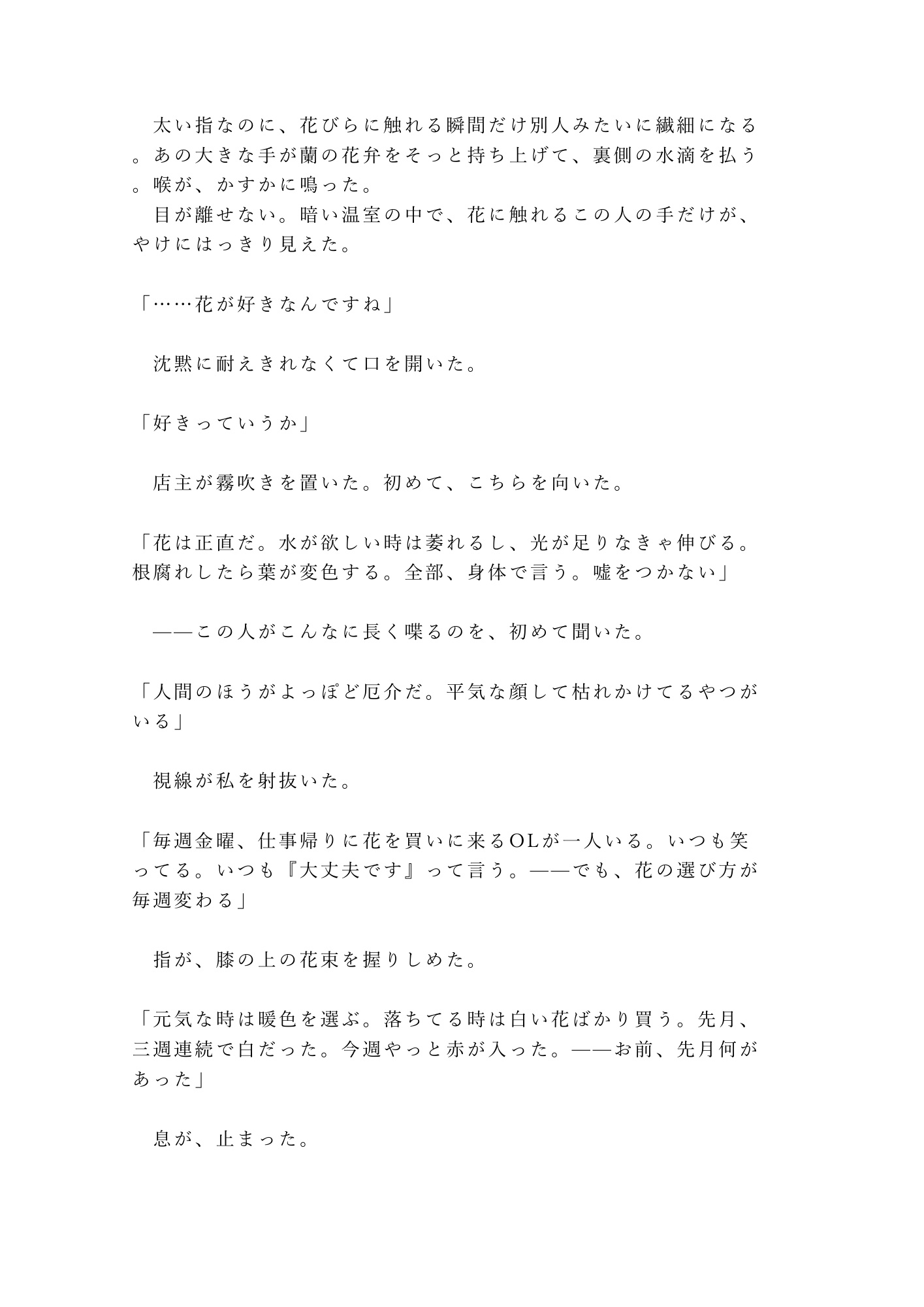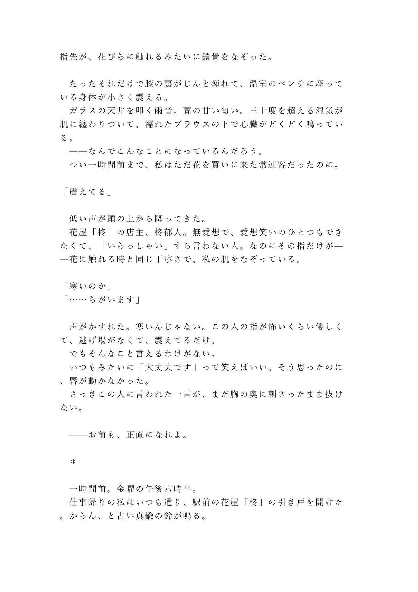 「花は正直だ。嘘をつかない」──萎れかけた蘭に水をやるように、枯れかけた彼女の心と身体を潤す、不器用すぎる溺愛の一夜。