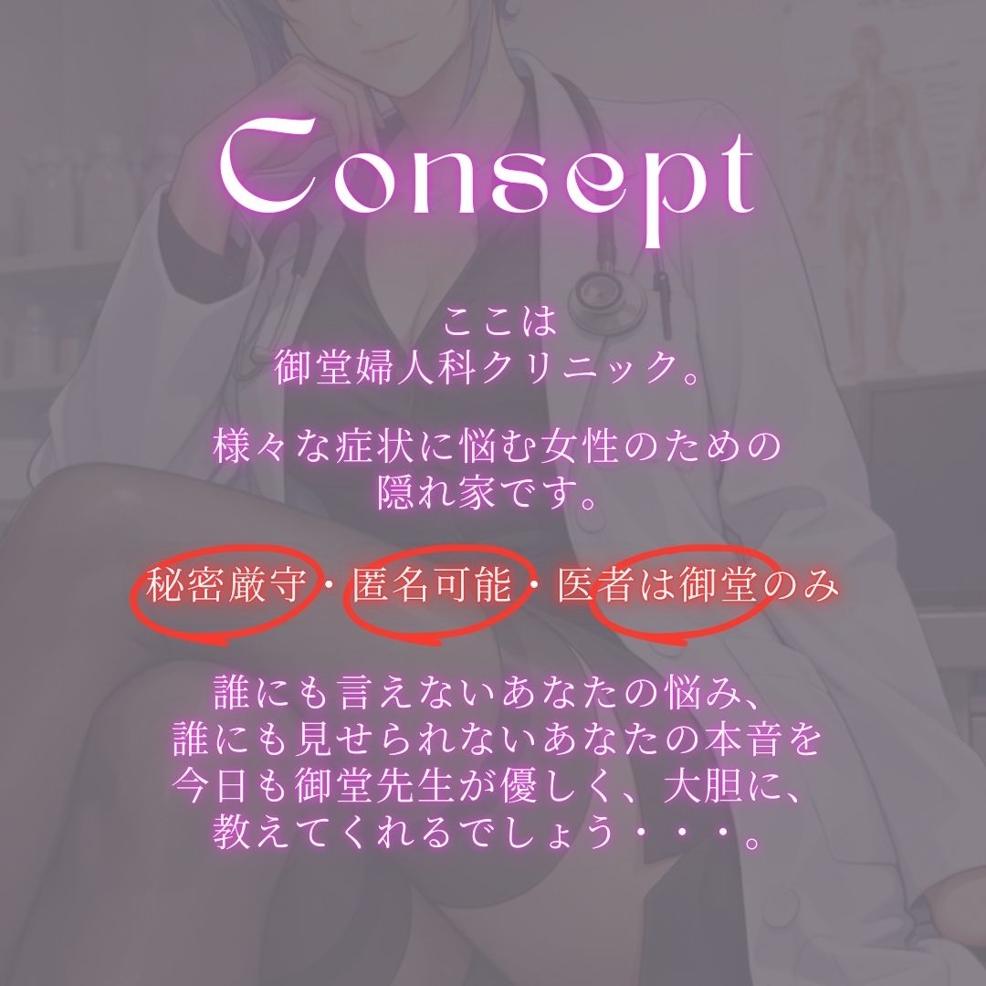 サークル処女作!冷静でえっちでちょこっと♡ドSな御堂先生が、不感症に悩むやさしく可愛いいあなたの本音を引き出し、絶頂へと導きます。