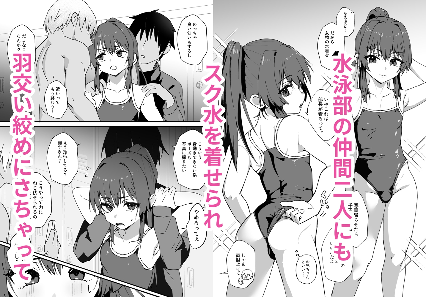 | ジャンル: | 男の娘 / スクール水着 / 体格差 / アナル / オナニー / 乳首責め / 複数プレイ/乱交 / メス堕ち / |