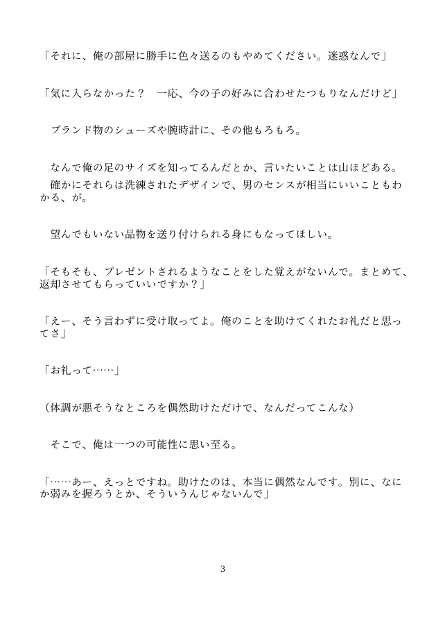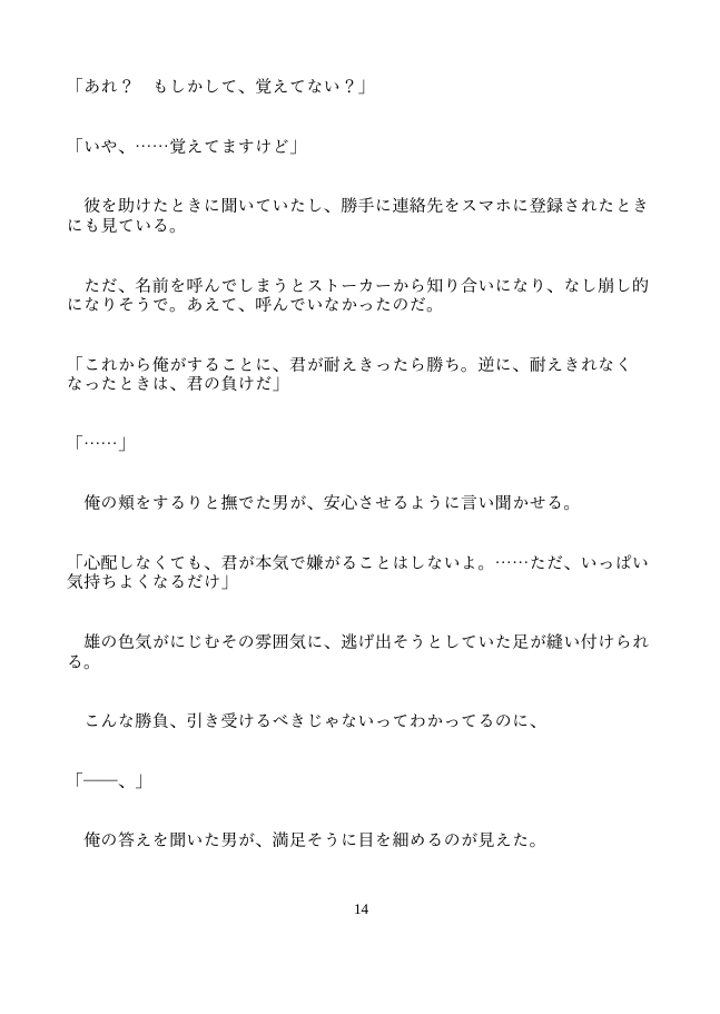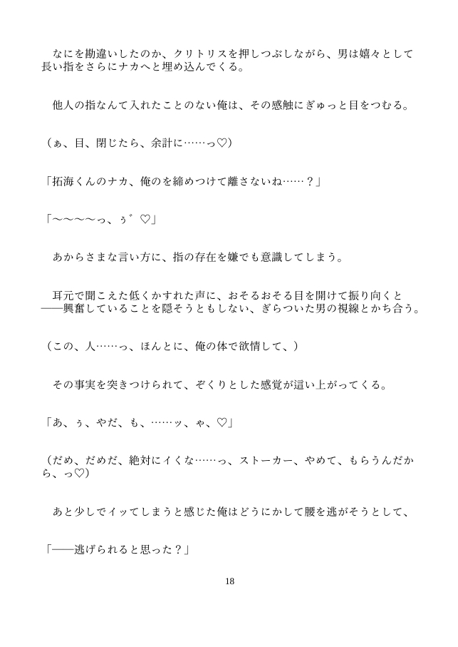 文字数は一万二千字程度で、カントボーイ大学生がストーカーに体から墜とされる話です。