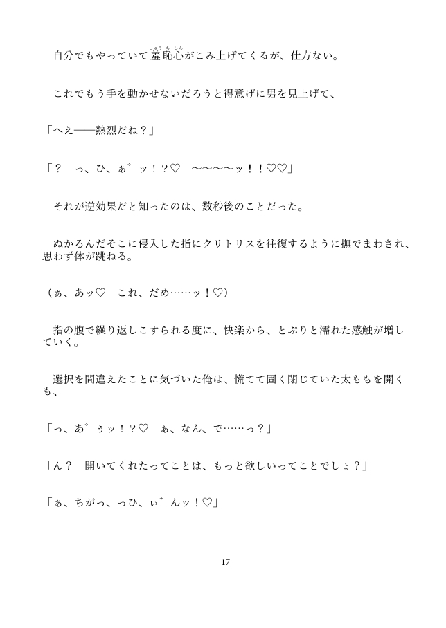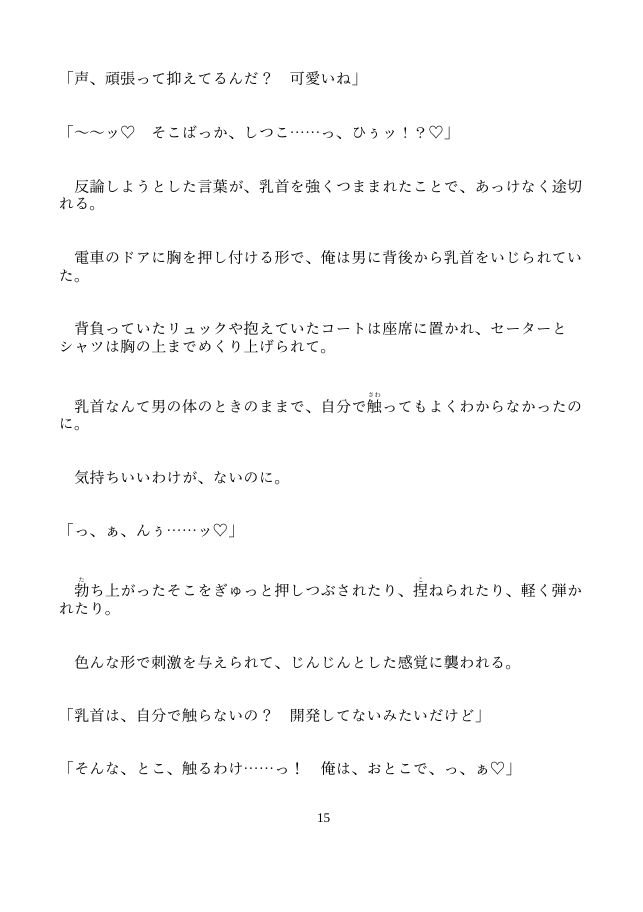 | ジャンル: | 快楽堕ち / 電車 / クリ責め / 潮吹き / 執着攻め / 秘密さわさわ / 中出し / カントボーイ / |