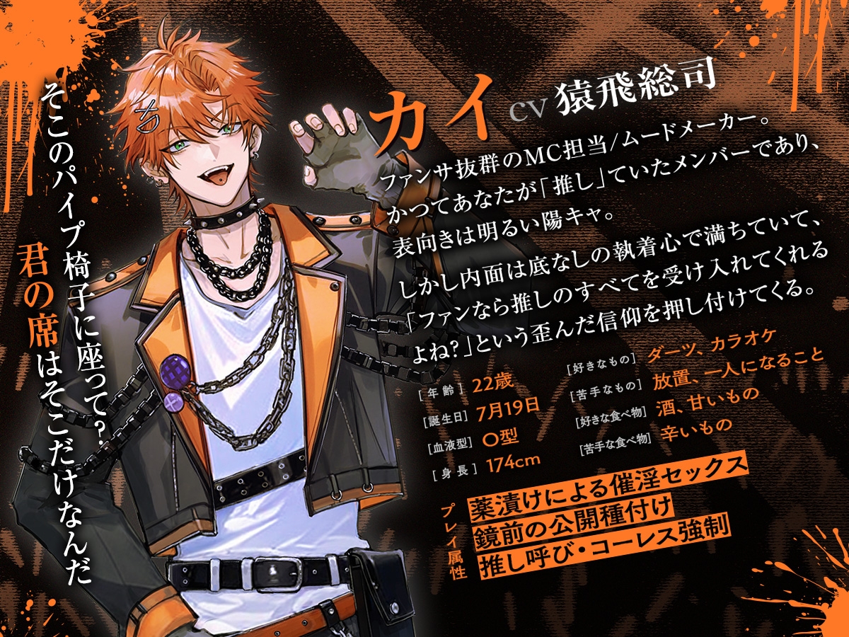 「あなたは私に従えばいいんです。裏切るなんて……絶対に許しませんから」カイ(22)【担当カラー:オレンジ】
