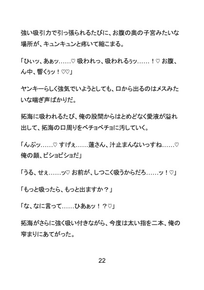 見た目は強気な金髪ヤンキー、中身はウブなカントボーイの我妻蓮。 付き合い始めた陰キャオタク彼氏・拓海を「俺がリードしてやる」と意気込んでいたが、無口な彼の本性は、身長188cmの巨体と規格外の【凶悪巨根】を持つ溺愛彼氏だった!