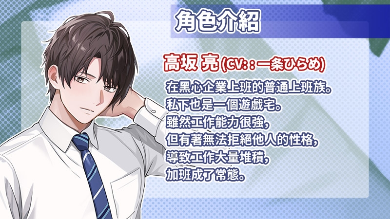 在超黑心企業工作的高坂(CV:一条ひらめ)今天也因被迫加班而筋疲力盡。