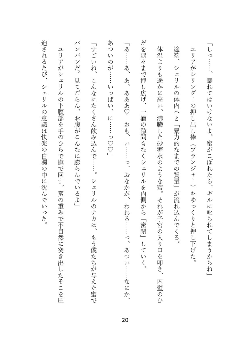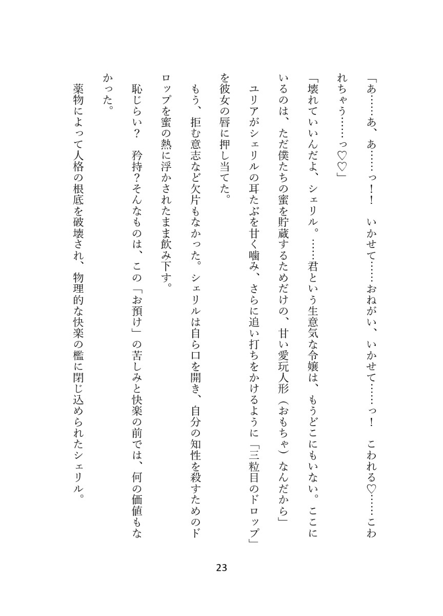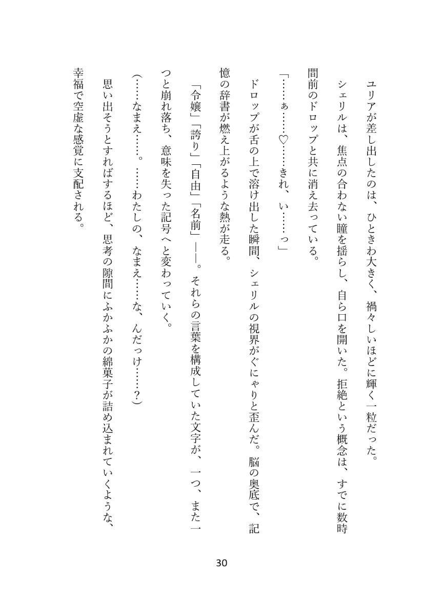 羞恥も絶望も、すべては甘い蜜の中に溶かされて。 色とりどりの飴が喉を通るたび不安も恐怖も快楽に埋もれていく、退廃と絶頂の変造ファンタジー。
