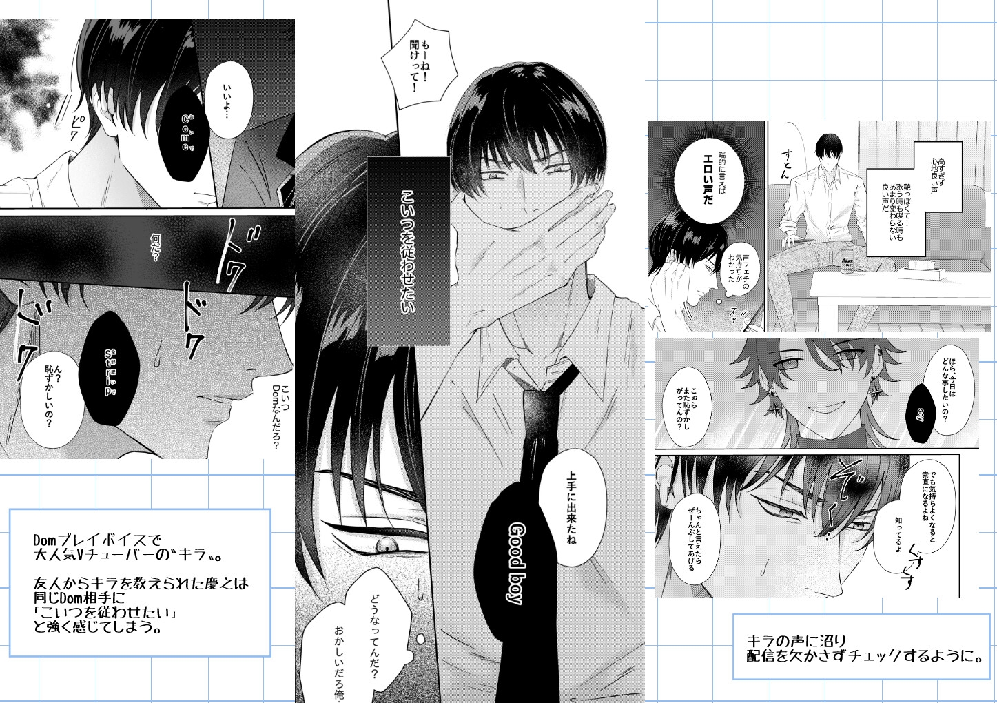 【Dom/Subユニバース】Domプレイのシュチュエーションボイスで人気のVチューバー〝キラ〟。友人にキラを教えられた慶之は、何故かDomのキラ相手に〝従わせたい〟と強く感じてしまう。ある日バーでキラに出会し、「2人で抜けませんか」と持ちかけられて━━