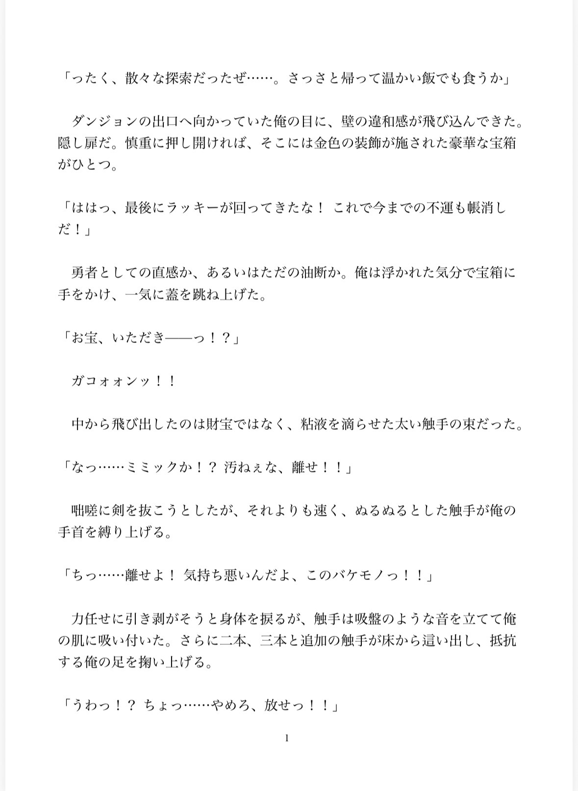 冒険者の男が宝箱を開けると中から飛び出してきた触手にちんぽもアナルも乳首も弄られることに!