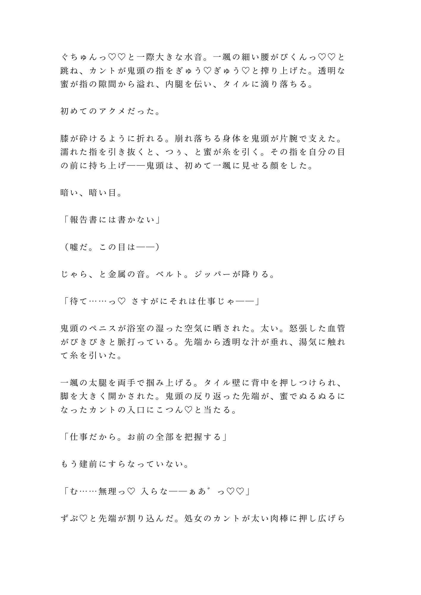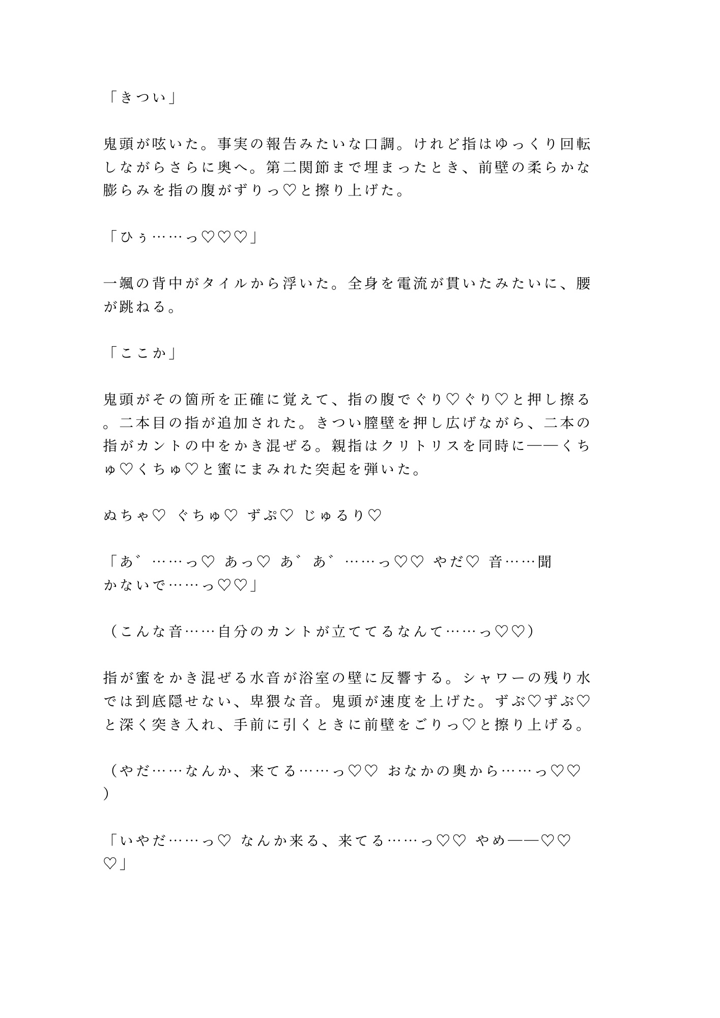 処女を暴かれ、抵抗も虚しく、一颯は浴室のタイルに背中を押しつけられたまま初めてのアクメを教え込まれた。