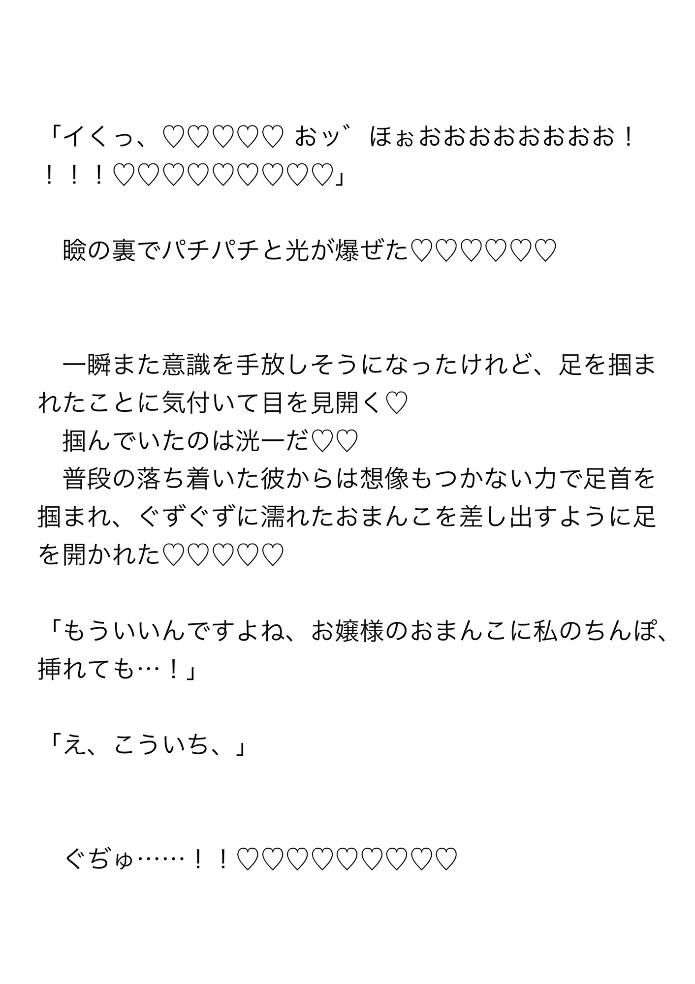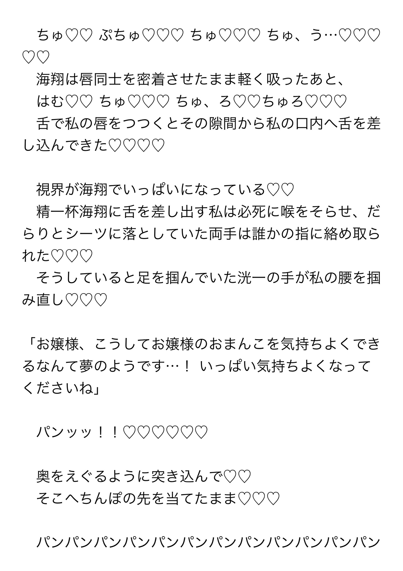 「私」は執事たちに溺愛されつつ、最後はハメながらのクリ電マ責めで連続潮吹きまでキメるのだった。
