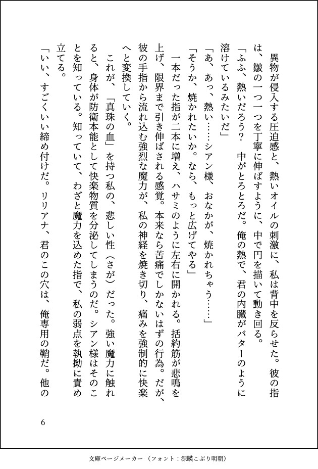魔力を無効化する「真珠の血」を持つリリアナの身体は、シアンにとって唯一触れることのできる安らぎの場所。 しかし、接触面積が広く深く繋がるほど冷却効果が高まると知った覇王の愛撫は、異常な方向へとエスカレートしていく。