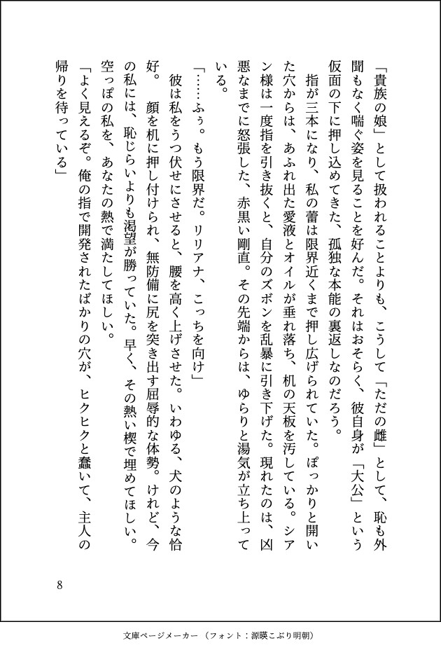 ■リリアナ(ヒロイン) 上流貴族の父と娼婦の母の間に生まれた不義の子。実家で冷遇されていたが、魔力を無効化・吸収する特異体質「真珠の血」を見出され、大公への生贄として嫁ぐ。 自己評価が低く、最初は「熱を冷ます便利な道具」として扱われることに安堵していたが、毎日の過激なアナル開発とシアンの狂愛によって、後ろの穴でしか満足できない淫乱な身体へと開発されてしまう。