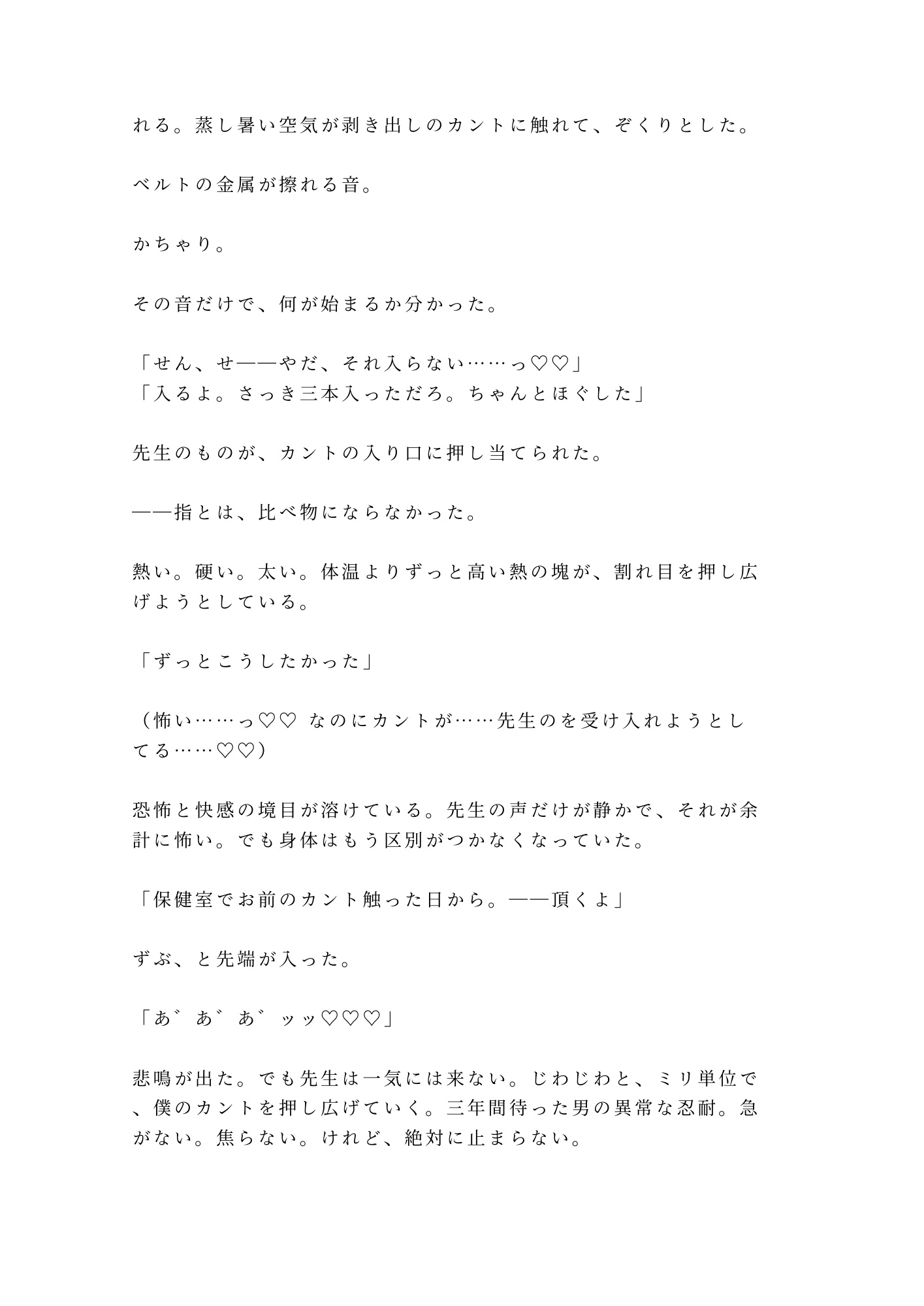 高校二年の保健室。体質検査と称して触れられたカントの記憶を、柊奏汰は誰にも言えないまま三年間抱えてきた。元担任・白石とは卒業以来会っていない。もう関わることはないと思っていた。