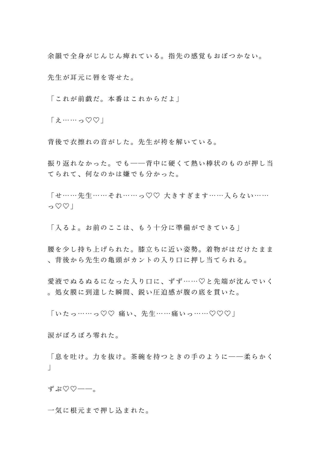 処女喪失、茶道具責め、正座拘束、四連続中出し、そして「専属茶器」への堕落。茶室という密室で繰り広げられる濃厚すぎる全五幕を、どうぞ正座してお読みください。